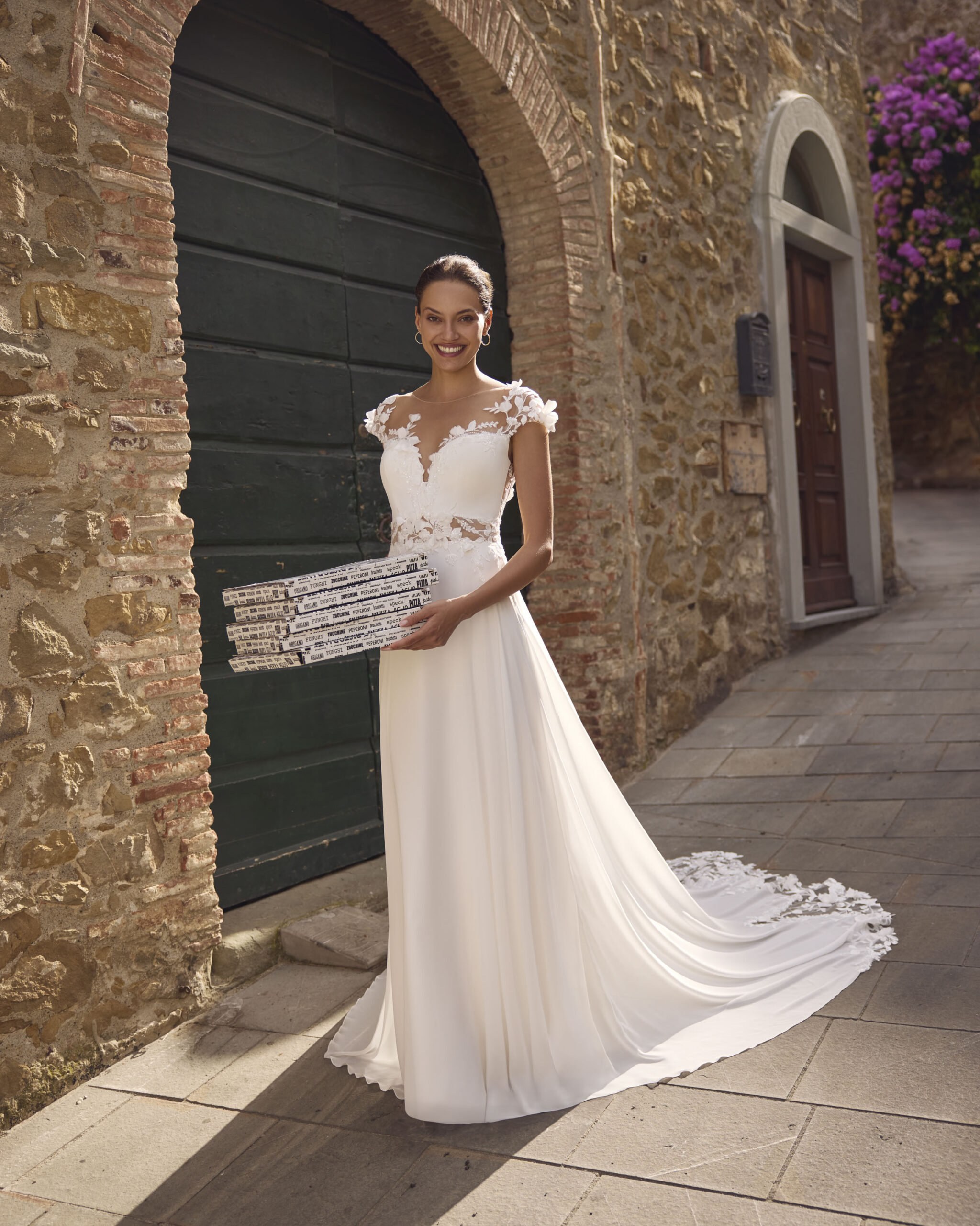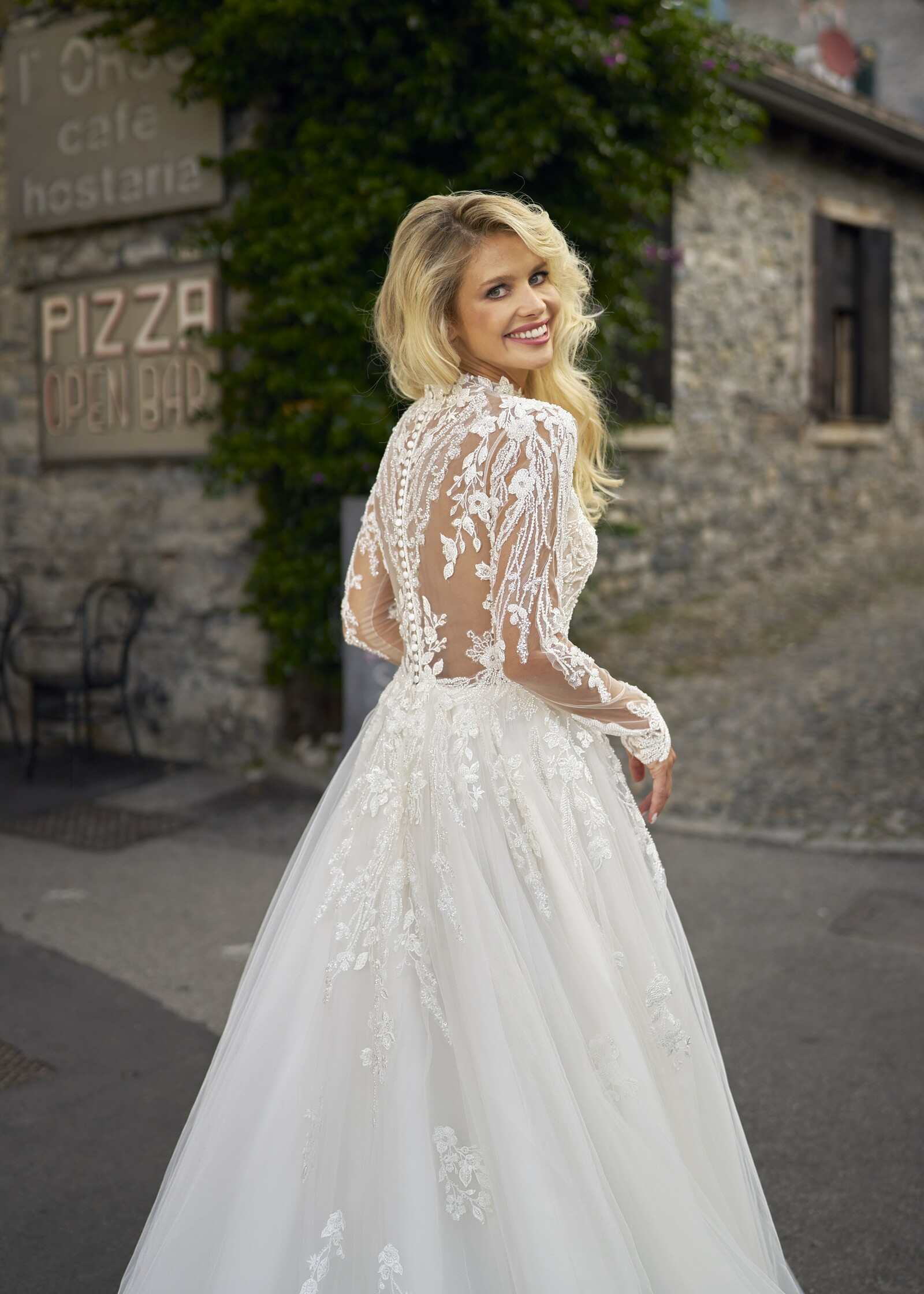 Il pizzo è un tessuto intramontabile che aggiunge un tocco di classe e bellezza a qualsiasi abito da sposa. La sua delicatezza e la sua trama intricata conferiscono un senso di romanticismo e femminilità che è difficile da eguagliare. È una scelta perfetta per le spose che desiderano un look classico ma allo stesso tempo affascinante. I nostri abiti da sposa in pizzo sono disponibili in una varietà di stili, tra cui abiti a sirena, abiti principeschi, abiti a linea e molto altro. La vestibilità è essenziale quando si tratta di un abito da sposa. Il nostro staff è a tua disposizione per assicurarsi che il tuo abito da sposa in pizzo sia cucito su misura per te. Realizziamo adattamenti e modifiche per garantire che l’abito si adatti perfettamente alla tua figura, in modo da farti sentire sicura e bellissima nel giorno del tuo matrimonio.