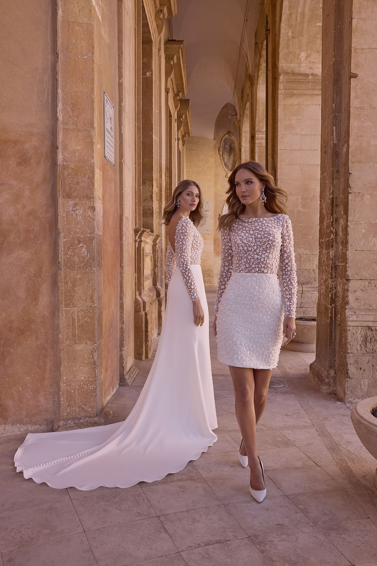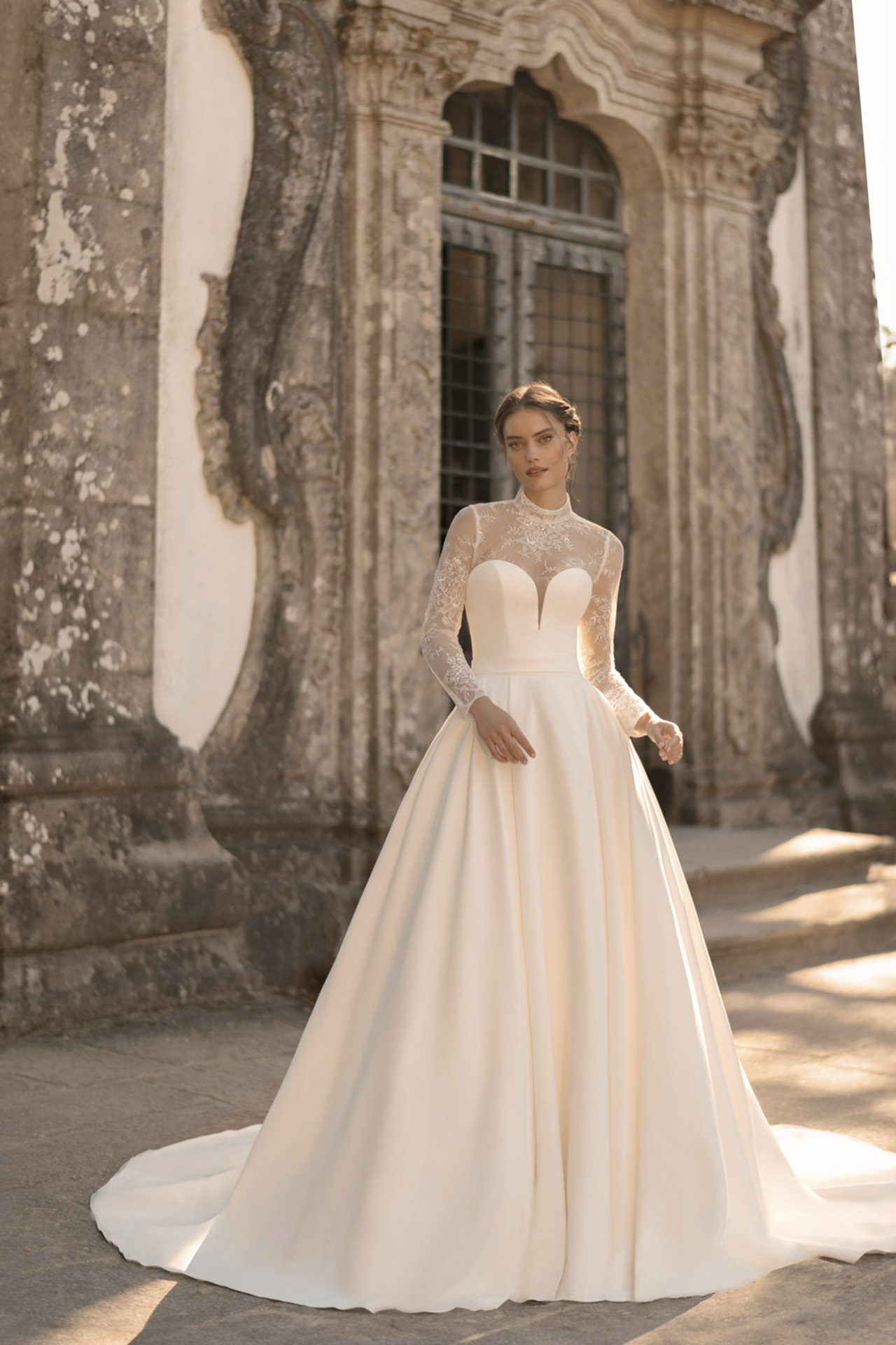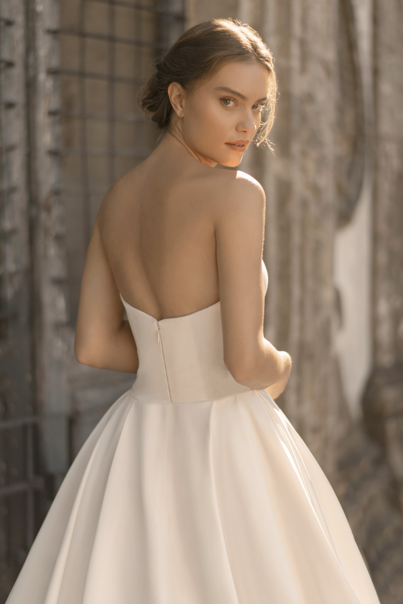 Gli abiti da sposa semplici ispirano un senso di pura bellezza. Sappiamo che ogni sposa ha il suo stile unico, ed è per questo che offriamo una vasta gamma di abiti da sposa semplici. I nostri abiti da sposa semplici seguono le ultime tendenze dell’alta moda nuziale. Ogni dettaglio, dalla silhouette ai minimi dettagli decorativi, è studiato con attenzione per garantire che ogni abito rifletta l’attualità in termini di design e stile. La semplicità si trasforma in un’affermazione di raffinatezza.