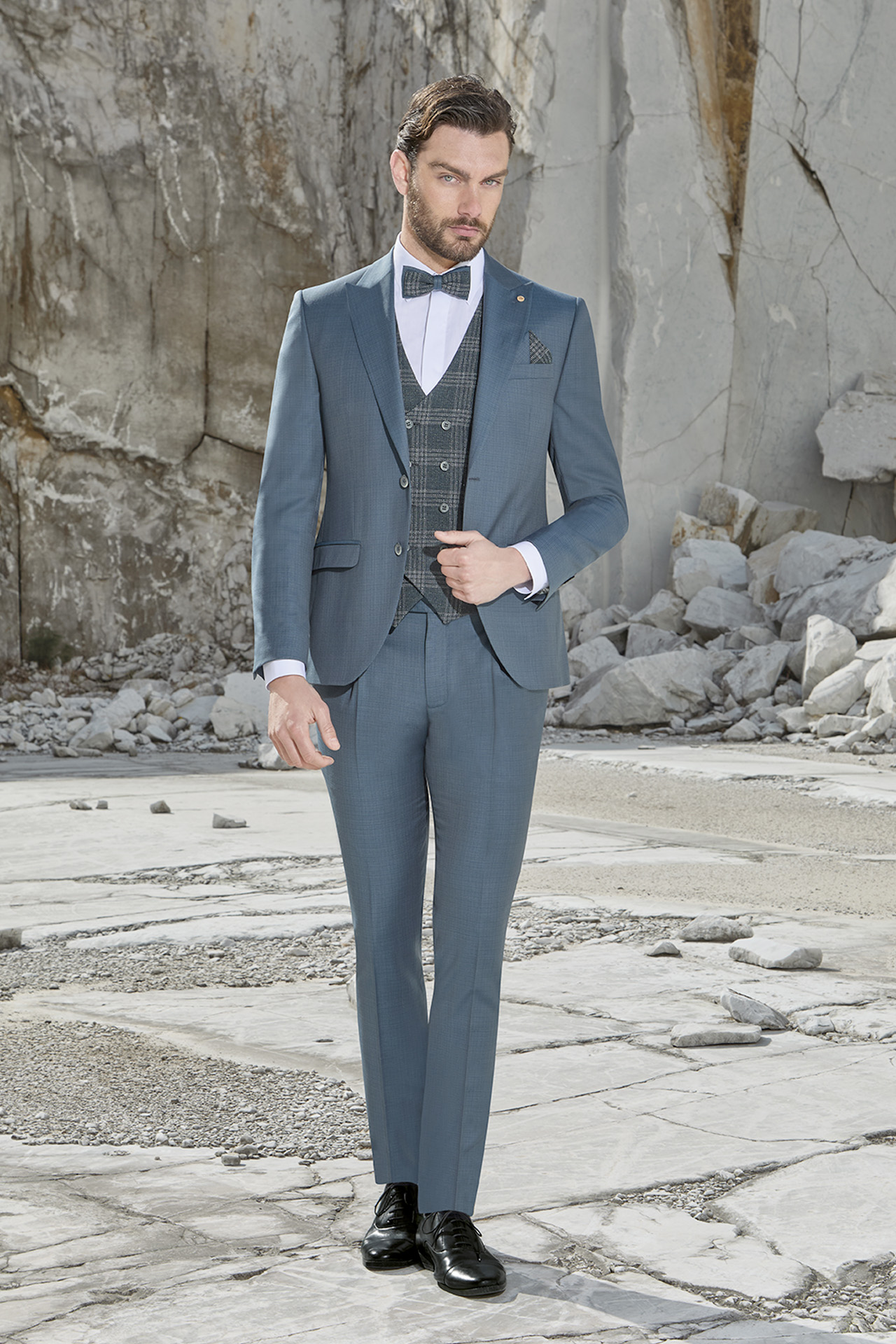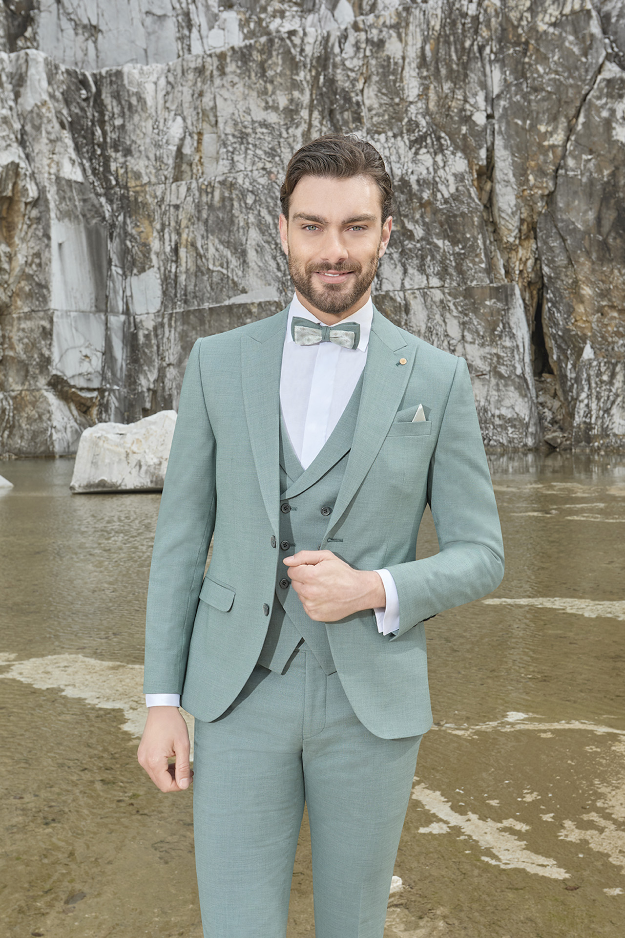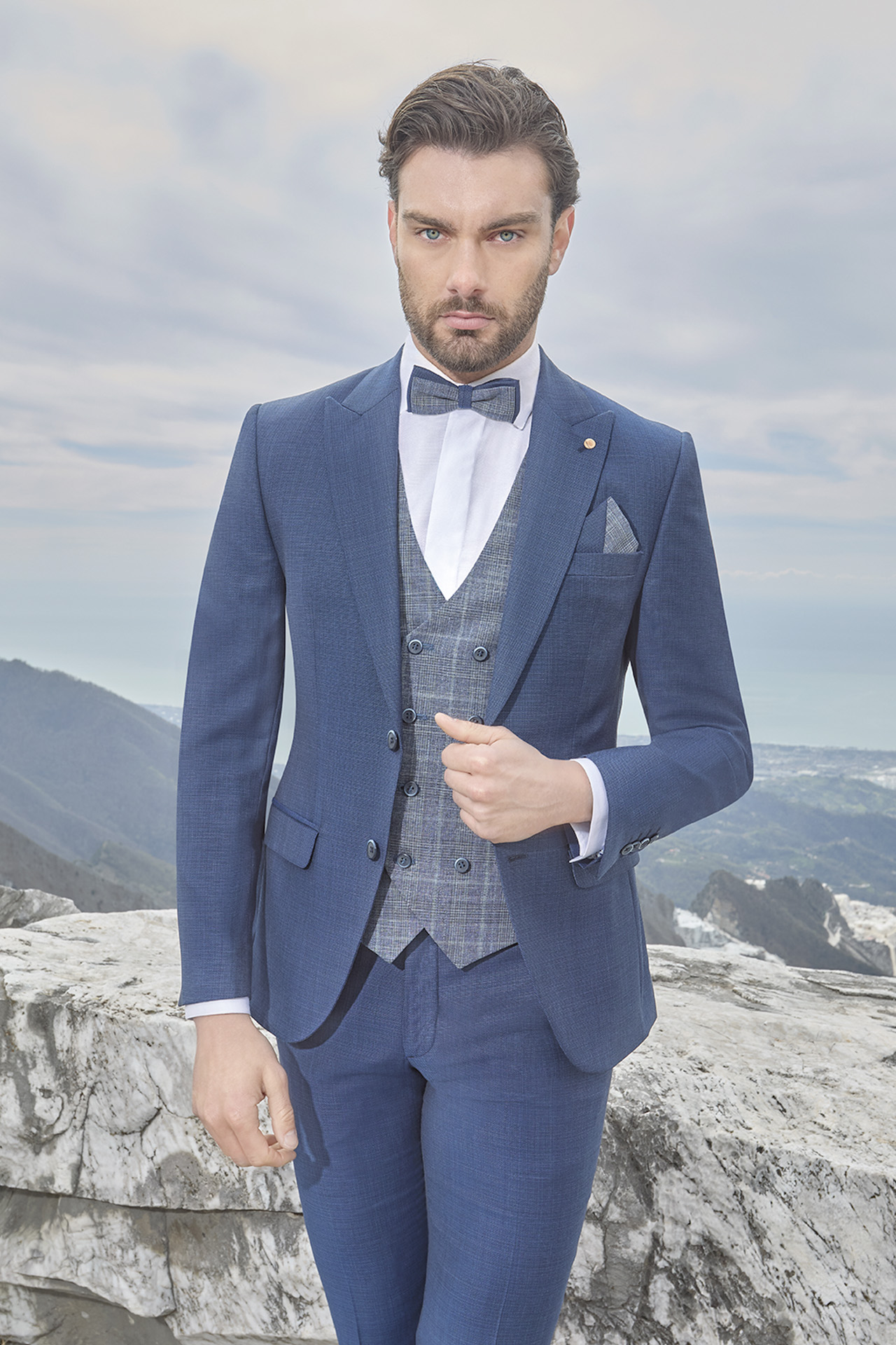 "Scopri la nostra eccellente collezione di abiti da sposo, con un'attenzione scrupolosa ai dettagli, dai gemelli al gilet su misura, al papillon o alla cravatta coordinati. I nostri abiti sono realizzati con tessuti pregiati, perché il tuo giorno speciale merita un look straordinario."
